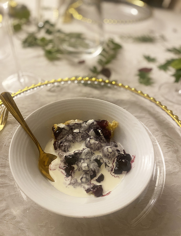 There are always special things that are passed down from our moms and grandmothers. In our case, it’s things like homemade ice cream, which I’ll give you the recipe for. There’s a wonderful British fruitcake that my mom makes, a Christmas cake with the icing and all, and there are crunchies made with syrup. Good, hearty fare comes to mind.